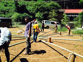 重い竹をみんな必死に支えていた。